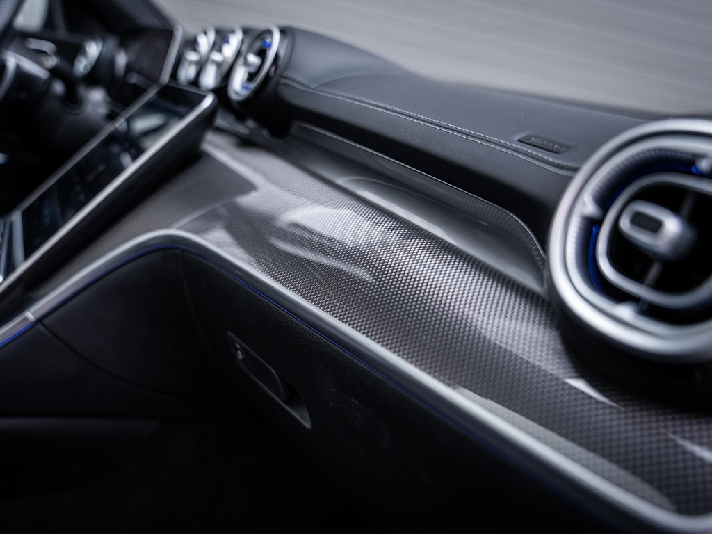 De auto is rijk uitgerust met geavanceerde rijhulpsystemen zoals Adaptive Cruise Control, Lane Assist en verkeersbordherkenning, waardoor u ontspannen en veilig onderweg bent. Het interieur is tot in detail afgewerkt met sportieve carbon accenten, een lederen dashboard en stijlvolle sfeerverlichting, wat zorgt voor een luxe en moderne ambiance.