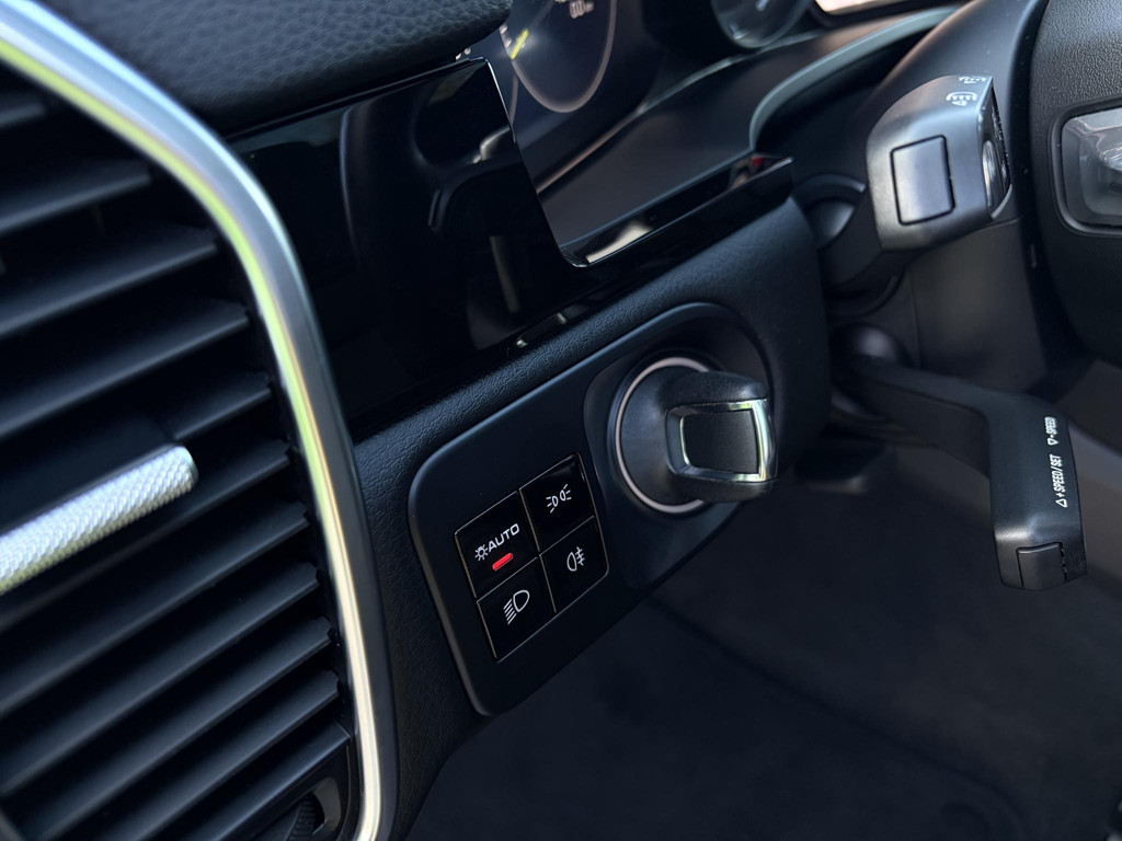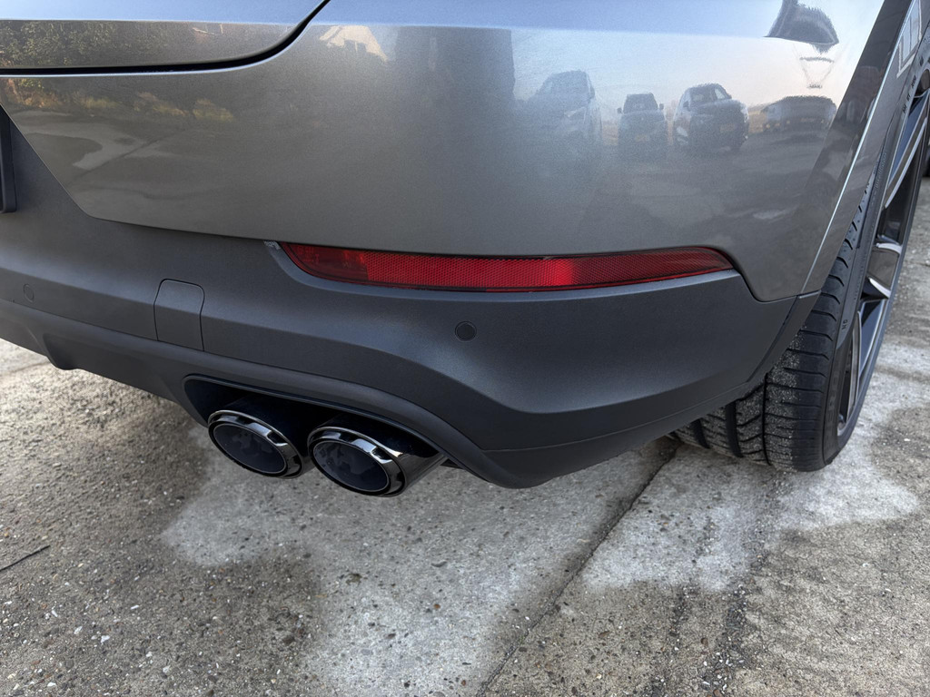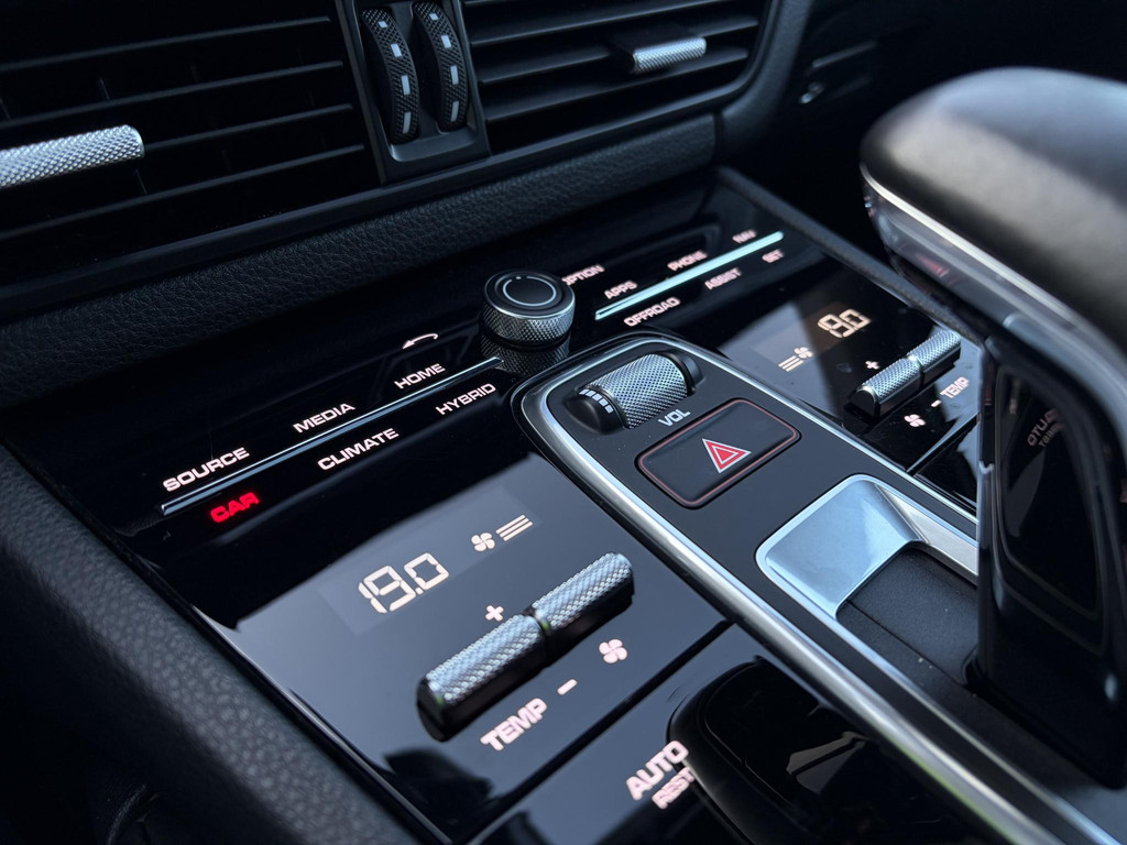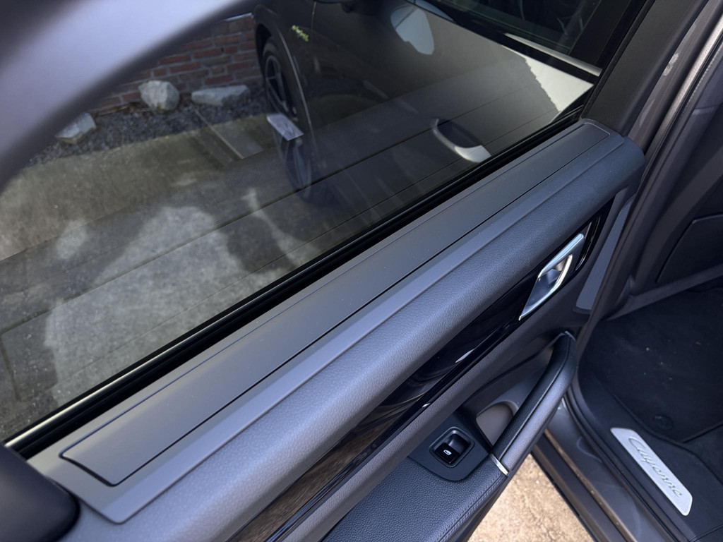 De auto is uitgevoerd in het stijlvolle Vulkaan Grijs, gecombineerd met zwarte accenten en imposante 22 inch Porsche Classic lichtmetalen velgen, wat zorgt voor een krachtige en stoere uitstraling. Het SportDesign-pakket onderstreept het dynamische karakter en geeft de achterzijde een extra sportieve look.