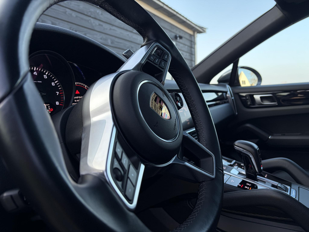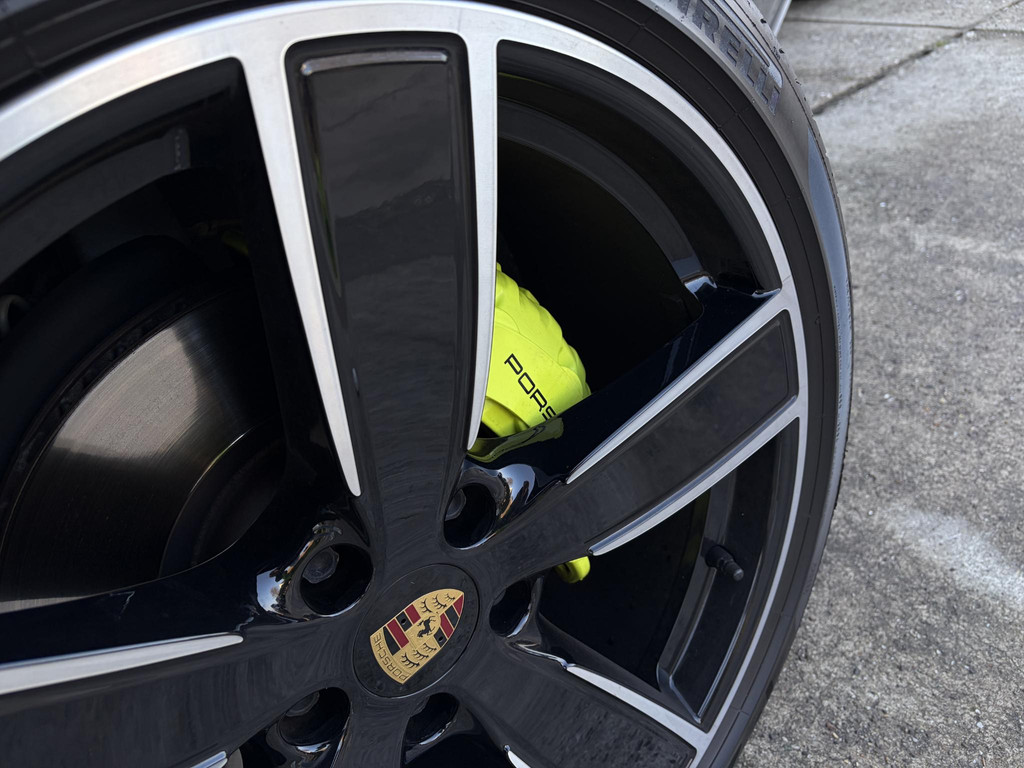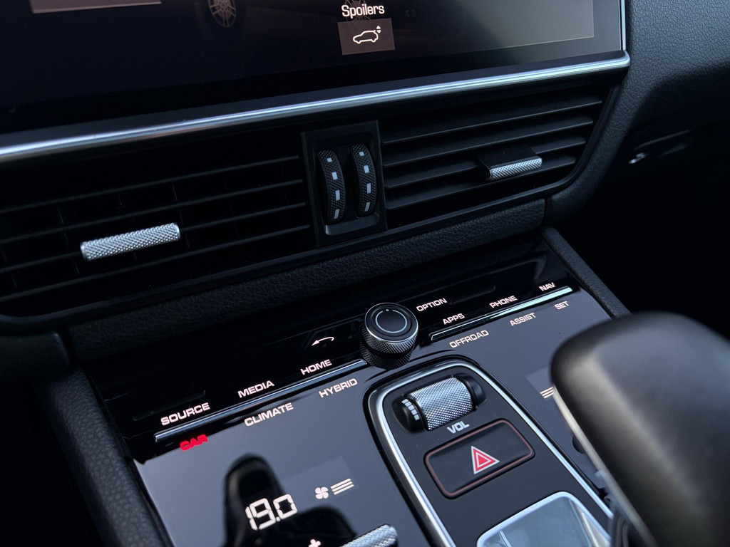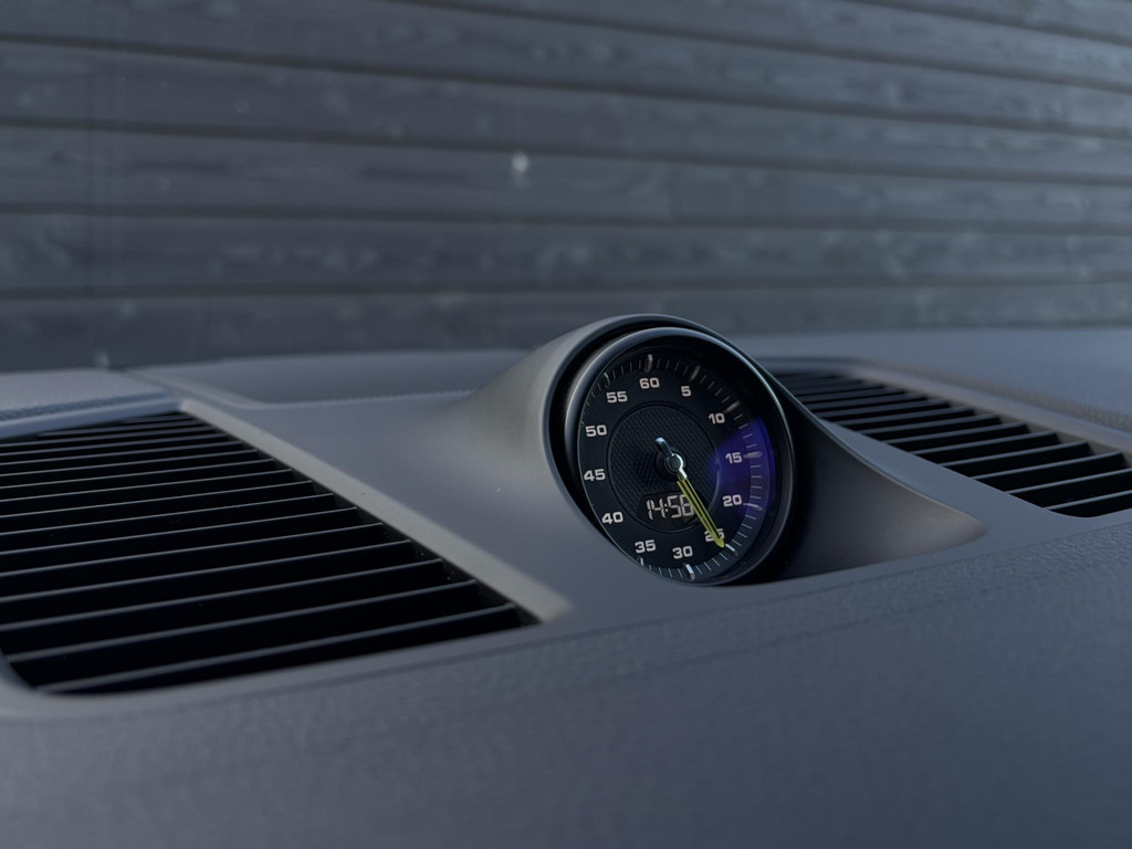 De auto is uitgevoerd in het stijlvolle Vulkaan Grijs, gecombineerd met zwarte accenten en imposante 22 inch Porsche Classic lichtmetalen velgen, wat zorgt voor een krachtige en stoere uitstraling. Het SportDesign-pakket onderstreept het dynamische karakter en geeft de achterzijde een extra sportieve look.