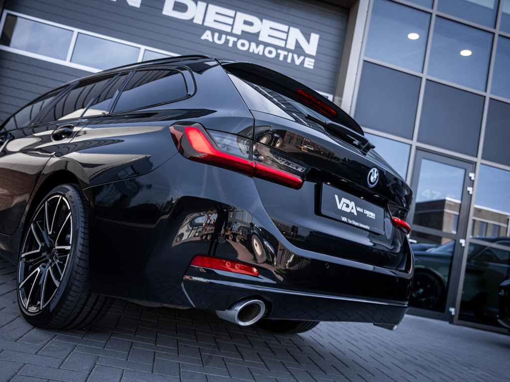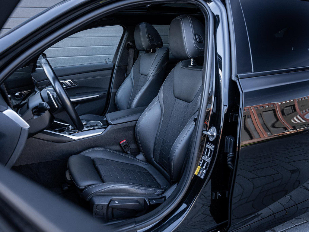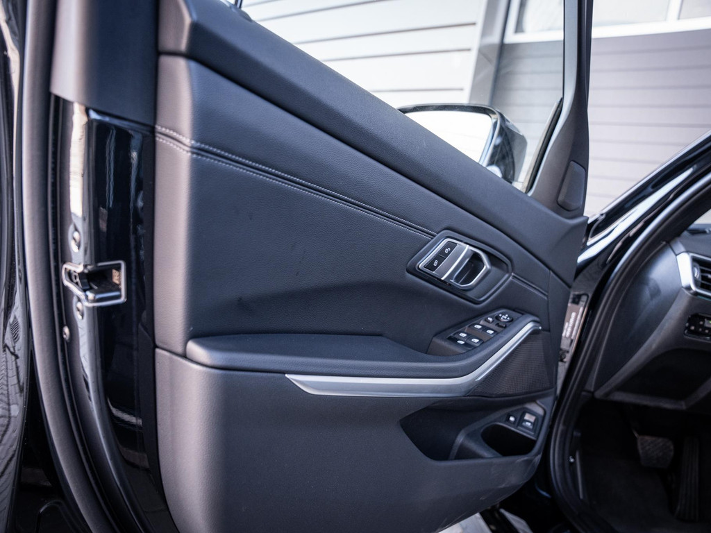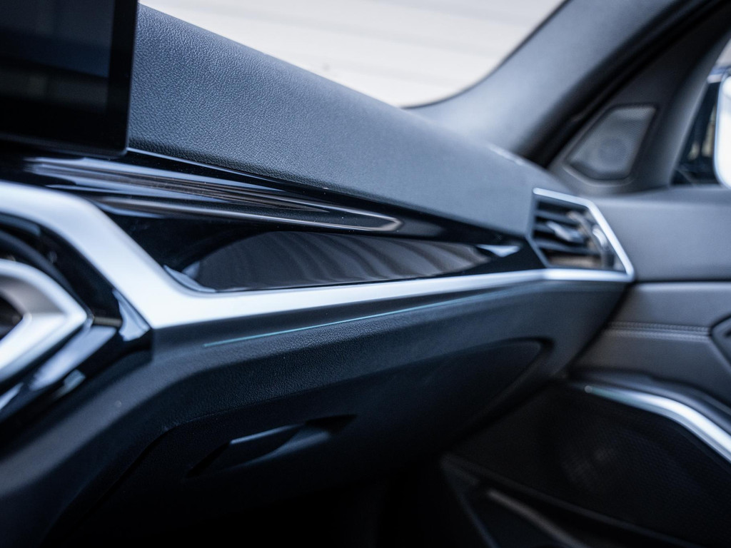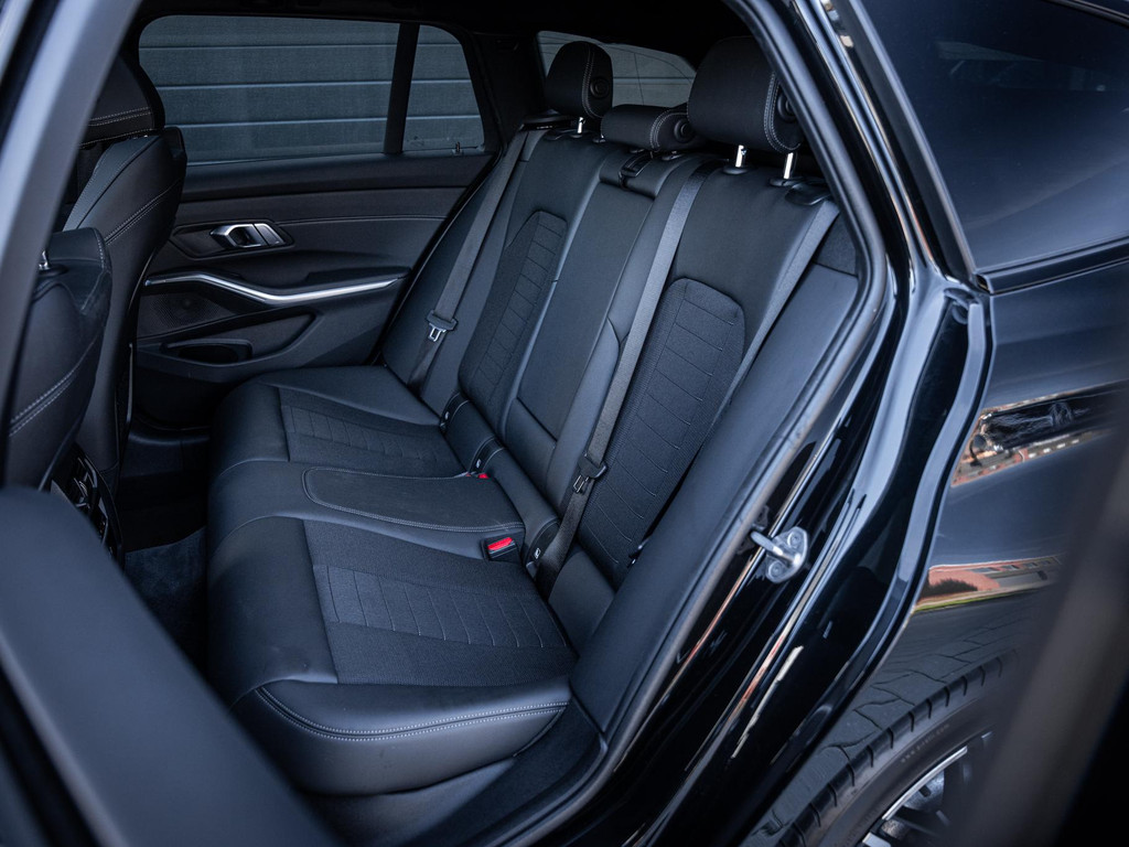 De diepe zwart metallic lak vormt de perfecte basis voor de vele zwarte accenten, waardoor het sportieve karakter van deze 3 Serie Touring extra wordt benadrukt. Het geheel wordt prachtig afgemaakt door de 19 inch M-Sport velgen, die zorgen voor een stoere, dynamische uitstraling en de auto een echte blikvanger maken op de weg.