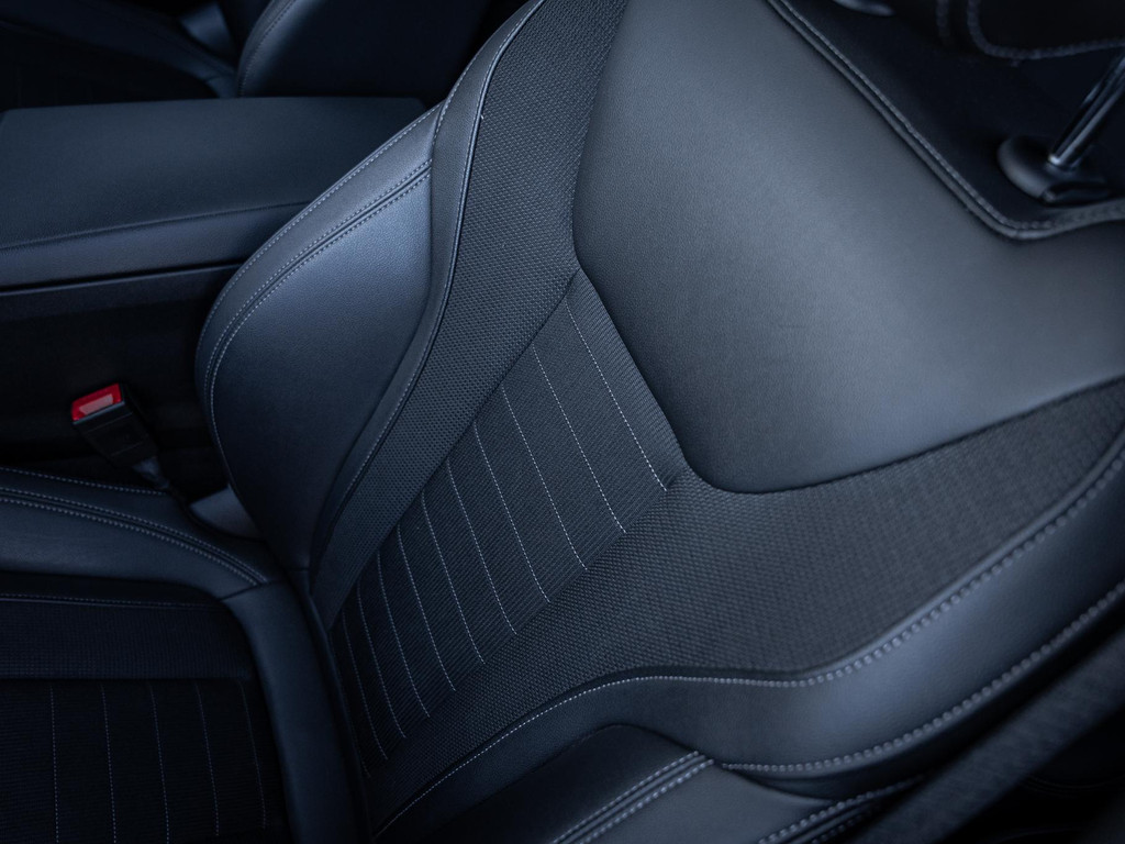 Ook van binnen is het genieten. Het interieur ademt luxe en comfort, met onder andere een panoramisch dak dat zorgt voor een ruimtelijk gevoel en extra lichtinval. Dankzij Apple CarPlay ben je altijd verbonden, terwijl de sfeerverlichting zorgt voor een aangename en moderne ambiance tijdens elke rit. De zwarte dakhemel onderstreept het sportieve karakter van het interieur.
